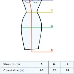 Details: hoge opstaande kraag, 3/4 mouwen en de borst is versierd met goudband en 3 strikken. De rok staat iets uit en is versierd met een rouge