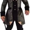 Deze gave zwarte carnavalsjas heeft een motief van zwarte brokaten borduursels. Een stoere jas voor heren om aan te hebben tijdens onder andere carnaval.