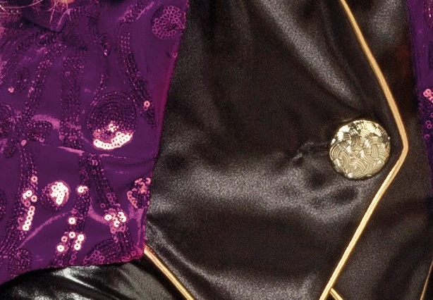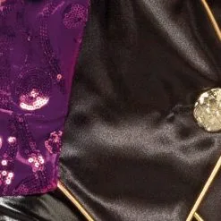 Paarse showjas voor dames met opdruk. De jas is dicht te doen middels een knoop.