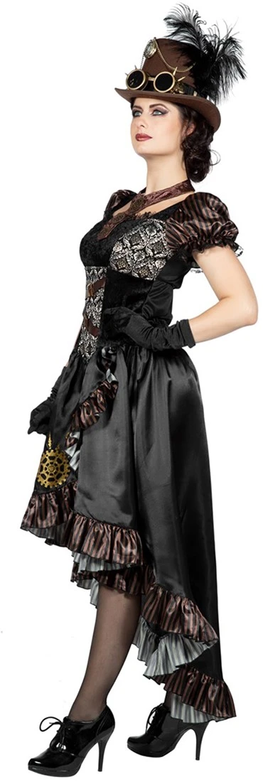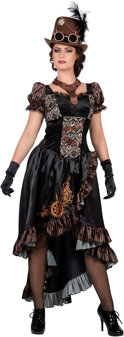 Een prachtige steampunk jurk met verschillende details. Mooi om aan te trekken naar een steampunk thema feest of gewoon voor de carnaval.