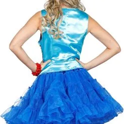Een gaaf gilet voor dames, met een Picasso-print. Op de print zie je de typerende kubistische gezichten en relle kleuren die vroeger door Picasso gebruikt werden. De voering en de achterkant zijn beide turquoise met een satijnen look&feel. Het vest is te sluiten met 3 knopen bij de middel.