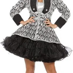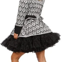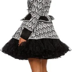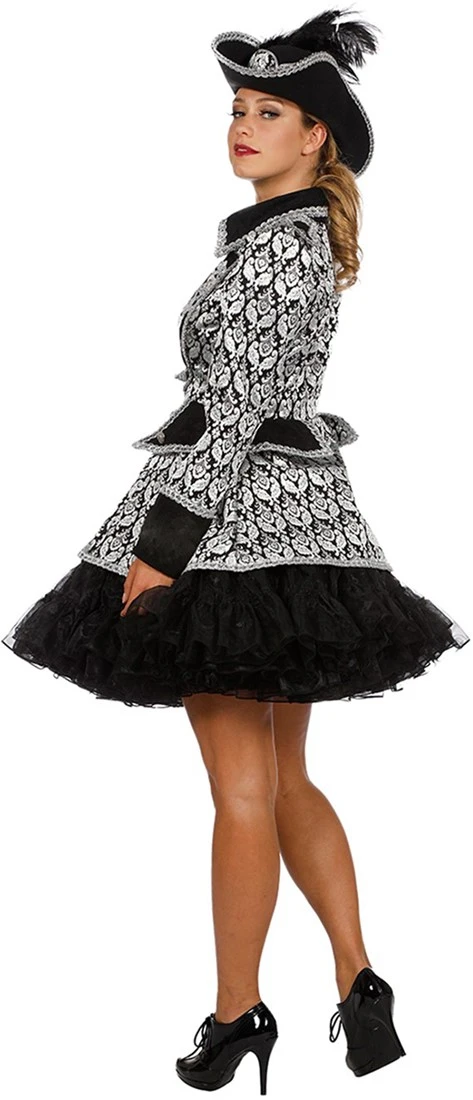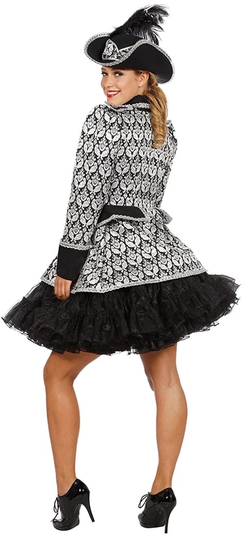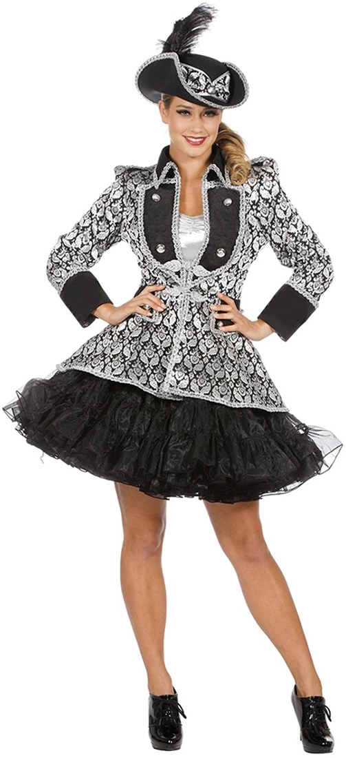 Een prachtige zwart/zilveren jas voor bijna ieder feest. Deze carnavalsjas is uitstekend om aan te hebben tijdens (de aanloop naar) carnaval!