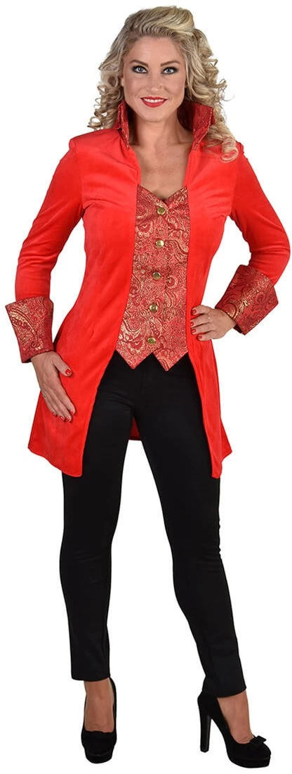 Details: de jas is gemaakt van nicky velours en de opstaande kraag, manchetten en borst heeft een brokaat motief
