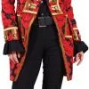 Details: op de schouders zitten gouden epauletten met goudkleurige franjes. Aan de voorzijde zitten voor de sier goudkleurige knopen. De jas is afgewerkt met goudband.
