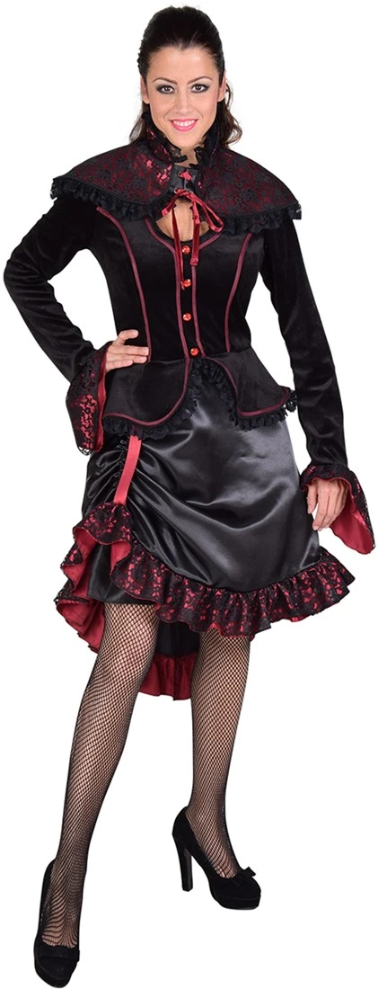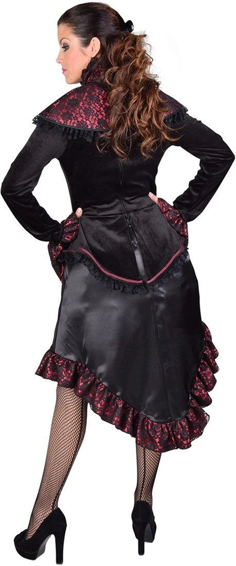 Op zoek naar een mooie steampunk jurk en dan niet met koper kleur? Dan mag deze jurk niet ontbreken, want in plaats van de veel komende koperen kleur, is deze rood!