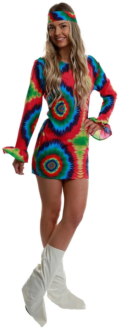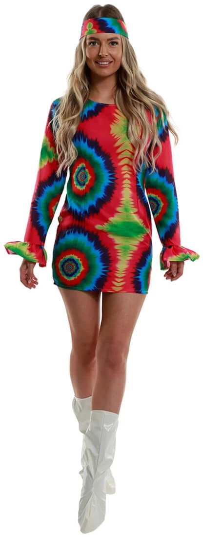 Wie kent het niet? Tie Dye! Dit jurkje is volledig voorzien van dit patroon in vrolijke kleuren!
