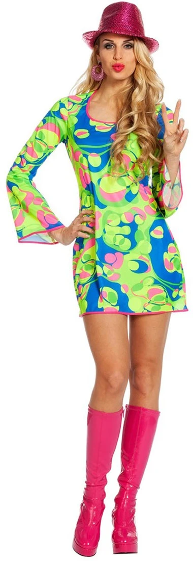 Ga jij lekker swingen in dit super gave sixties jurkje? Hij is zo vrolijk gekleurd dat je bij iedereen een glimlach op het gezicht toverd