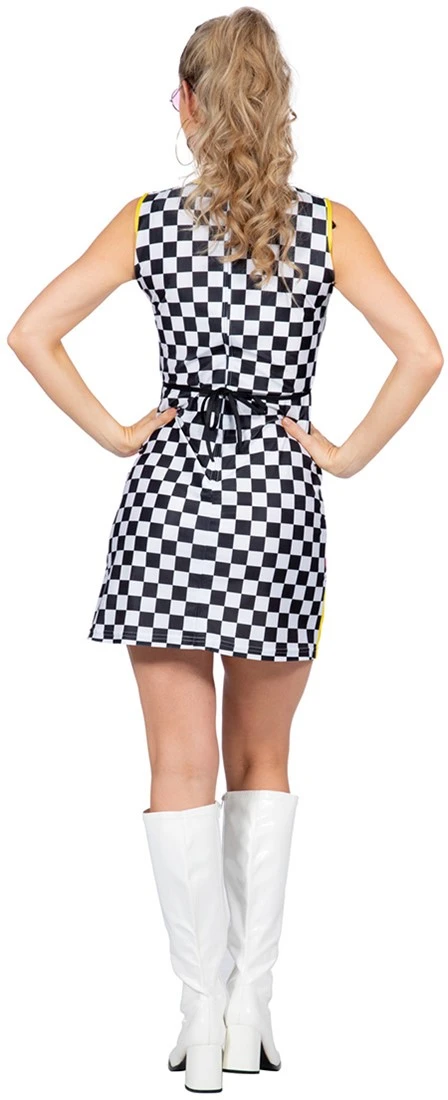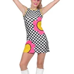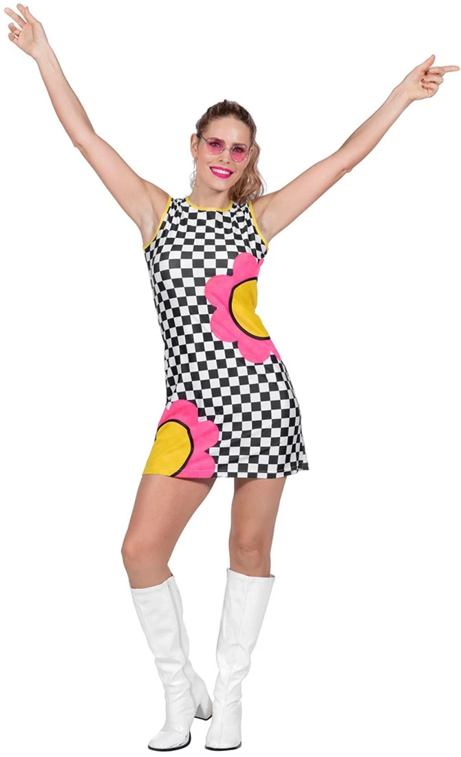 Patroon: checkered (zwart wit geblokt) met 2 grote roze/gele bloemen