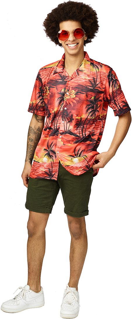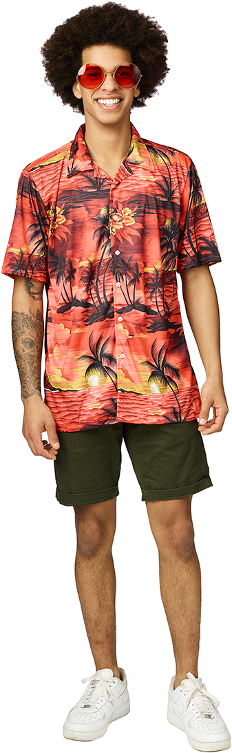 Leuke oranje hawaii blouse voor een tropisch feestje!
