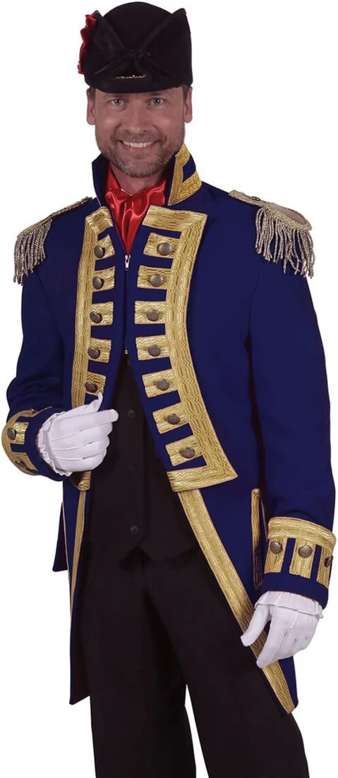 Een luxe maar vooral mooie stoffen carnavalsjas! Wat de jas mooi maakt zijn de vele rosé kleurige knopen bij de epauletten, op de borst en rondom de mouwen.