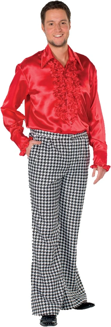 Een mooie broek met zwart wit blok motief, leuk met onze rucheblousen !