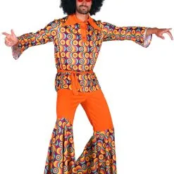Details shirt: grote oranje puntige kraag en wijd uitlopende mouwen