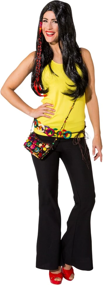 Leuk tasje met multi gekleurde kralen aan de dubelle draagband. Uitstekend te dragen wanneer jij een Flower Power party hebt! Of als je als hippie verkleed gaat.