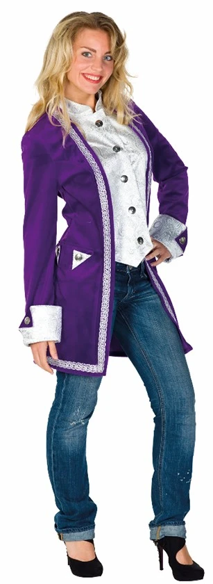 Super mooie Jas Renaissance voor Dames Paars. Zilveren gedeelte in het midden zit vast aan het jasje. Het jasje is gemaakt van polyester.