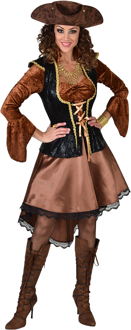 Super mooie piratenjurk en door de kleuren samenstelling ook goed te gebruiken voor het thema steam punk